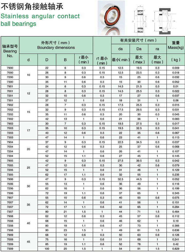 不锈钢角接触球主要应用于:机床主轴、高频马达、燃汽轮机、离心分离机、小型汽车前轮、差速器小齿轮轴、增压泵、钻井平台、食品机械、分度头、补焊机、低噪型冷却塔、机电设备、涂装设备、机床槽板、弧焊机、油泵、罗茨鼓风机、空气压缩机、各类变速器、燃料喷射泵、印刷机械、行星减速机、萃取设备、摆线减速机、食品包装机械、电焊机、电烙铁、方箱、重力式喷枪、剥线机、半轴、检验分析设备、精细化工机械 。